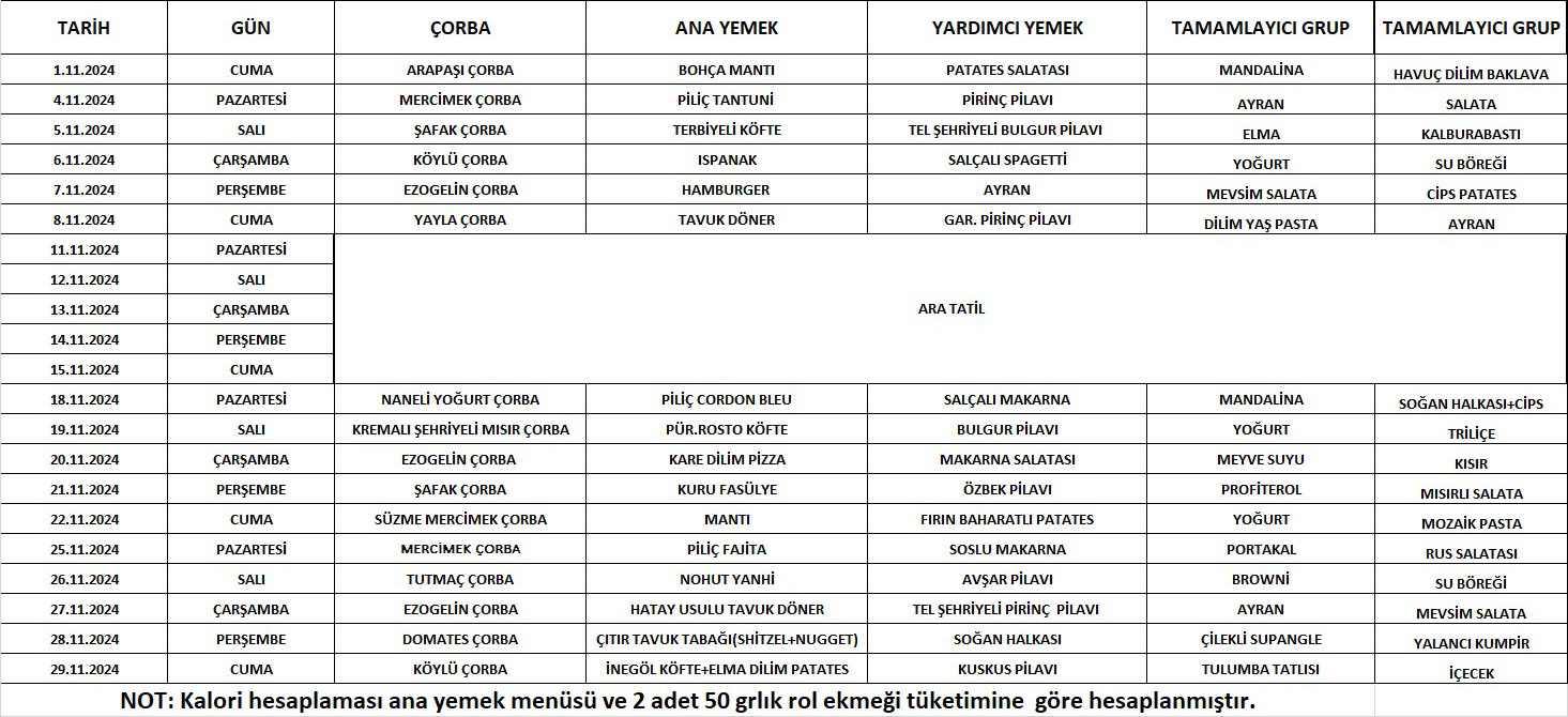 Yemek Listesi